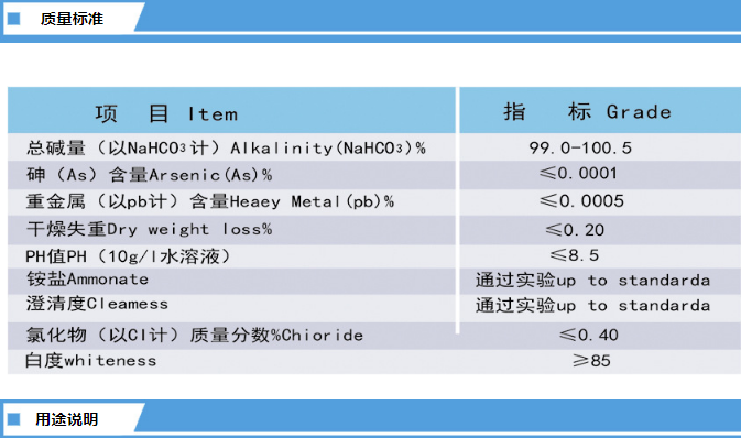 化學名稱:碳酸氫鈉 NaHCO3 產品用途:碳酸氫鈉俗稱小蘇打,產品呈白細小晶體,無臭、咸味。 物化性質:主要用于食品工業中做添加劑、橡膠工業中做發泡劑、醫藥工業中做制酸劑、消防器材發生劑、洗滌劑的配合剤、印染、紡織、滅火劑、研磨劑、化工助劑、電影制片的洗滌劑以及汽水、啤酒、飲料中的二氧化碳發生劑等。 |